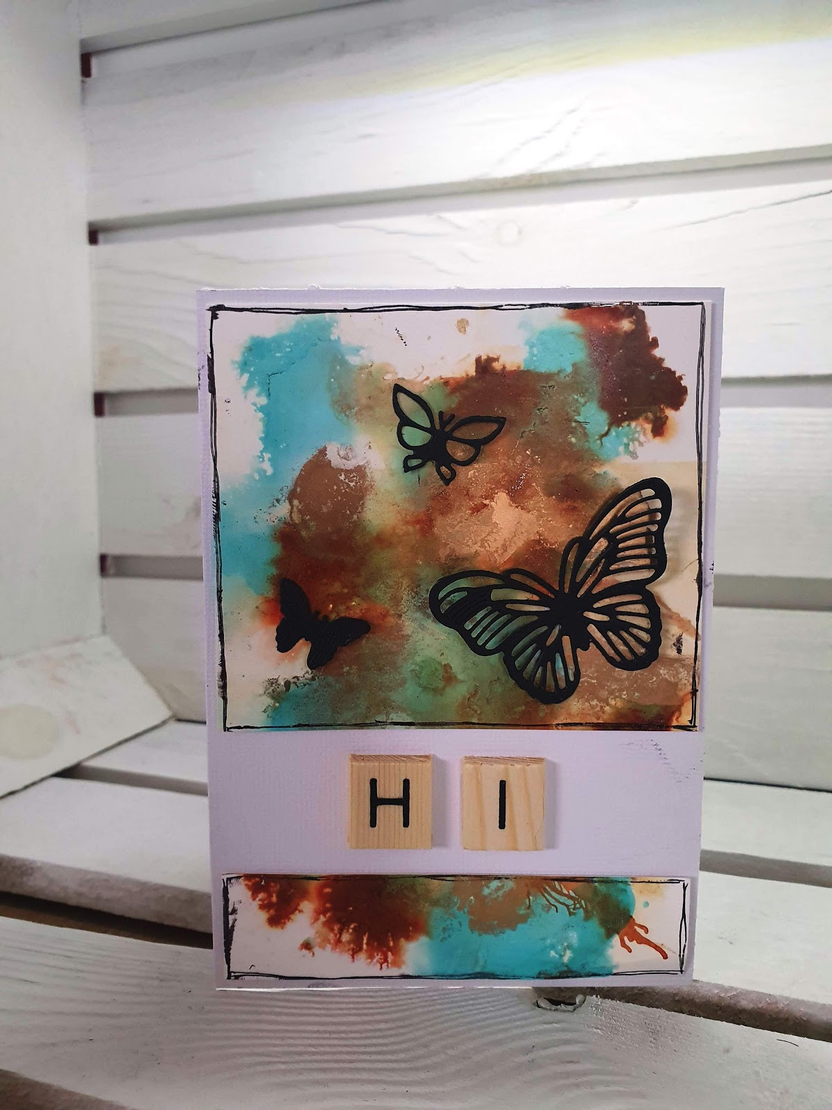 Cardstock van florence en DP komt van action, alsook de gemstones. Ik heb de tekst gemaak met de Happy Jig. en voor de rest nog wat dies van vlinders.